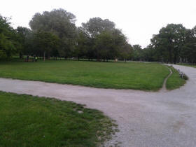 ... gehst du schräg nach links in die Wiese bis zu den Bäumen |